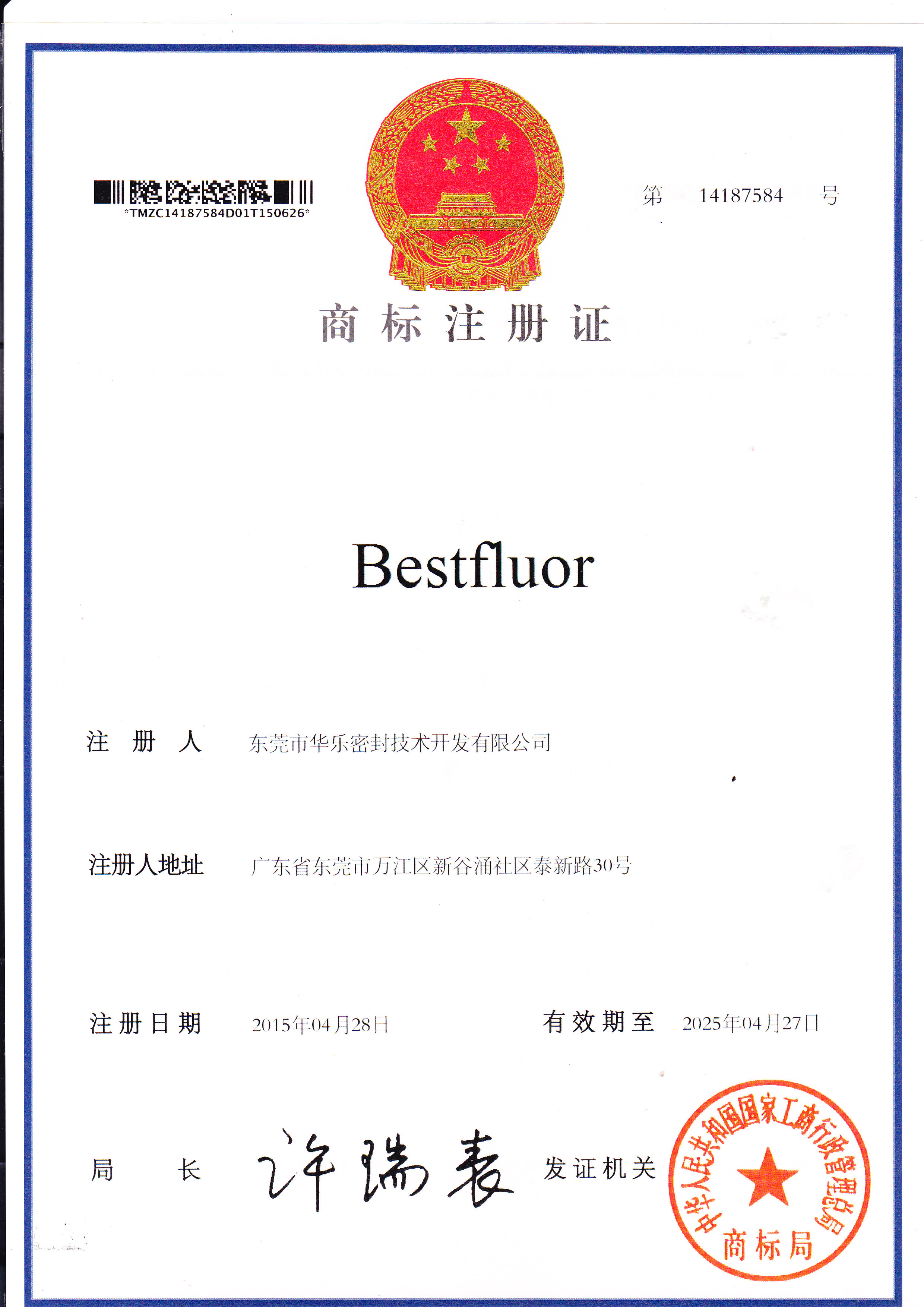 華樂密封注冊商標