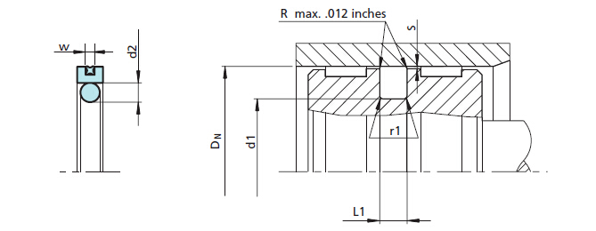 Ring T and Turcon Stepseal K installation according to ISO 7425/1