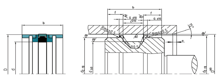由密封環、彈性圈、二個擋圈和二個導向套組成,導向套起定位和導向作用,彈性圈提供預緊力并補償密封環的磨損,密封環與油缸內孔形成配合對偶面而產生密封效果,適用于油缸活塞的密封。DDKK具有雙向密封效果。