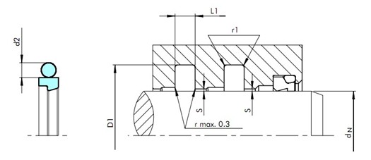適合各種行程及范圍較廣的流體和高溫場合,可適用較大的活塞桿間隙。摩擦力小,溝槽簡單,在有油污染的介質中也能夠使用。注意(溝槽尺寸和GSJ有所不同)